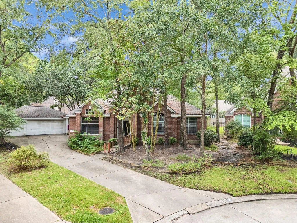 Inviting 3/2/2 single story in Alden Bridge, with GENERAC generator. Located on quiet cul-de-sac. Spacious family room has arched doorways, stylish up-lighting & high ceilings that highlight the home’s open design.Flexible floor plan offers office or 4th bedroom with French doors, + formal dining. Island kitchen features updated hard-surface counters & sink, abundant cabinets, breakfast bar, light & bright breakfast area, ideal for gatherings. Generous walk-in closets in primary suite & bathroom, which has double sinks, soaking tub, separate shower. Wood & tile flooring in common areas add warmth & style. Utility room has great storage. Recent roof. Fridge, washer/dryer, TV included. Oversized garage. Backyard natural space offers privacy for relaxing or entertaining. Decking & bedroom carpets need updating- the ideal opportunity to add your personal touches for your dream home. Located close to dining, shopping, entertainment & medical facilities. Convenient to all main roadways.