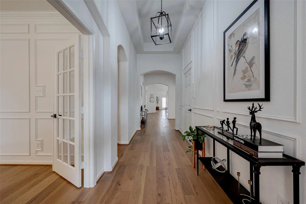 BEST PRICE in Long Meadow Farms that has been COMPLETELY UPDATED! Beautifully updated with high-end finishes throughout! Recent upgrades include a new roof, fresh interior & exterior paint, rich hardwood floors, and elegant crown molding. The dream kitchen features quartz countertops,custom vent hood, new appliances, stylish hardware, quartz backsplash, and floating shelves. The spacious primary suite offers a wall of windows and custom ceiling beams, while the luxurious en-suite bath boasts quartz counters, designer fixtures, new flooring, a frameless glass shower, and a freestanding tub. Enjoy a dedicated home office with custom wood trim and chandelier, a formal dining room with beautiful millwork, and fully renovated secondary bathrooms. Upstairs you’ll find a large game room with a new electric fireplace and custom trim details. Relax outdoors on the covered patio with no back neighbors, just steps from scenic lakes and walking trails. PRICED TO MOVE!