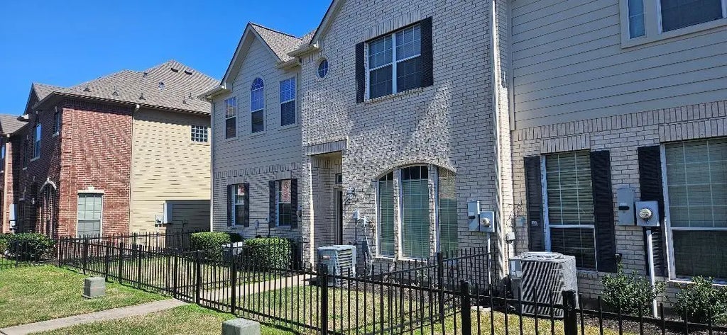 Beautiful move in ready large home with lots of light and space near pool in gated community. pen floor plan with lots of updates. modern townhome Stylish, neutral colors, high-end finishes, and fixtures. Skylight entry, high ceilings in living area, Gourmet style kitchen with granite counters and stain-less steel appliances. bar seating. Maple cabinets Wood-style flooring throughout. Two-inch blinds. Open concept living and dining area down. Kitchen with breakfast bar, granite counter and stainless-steel appliances. Gameroom or home office up. Primary Bedroom with updated spa includes double vanities, whirlpool tub. Stunning community pool area with waterfall. Refrigerator, Microwave, Stove, Washer and Dryer included. Small gated front yard, great location. Please send applicants name and email for online application. Available December 2025.