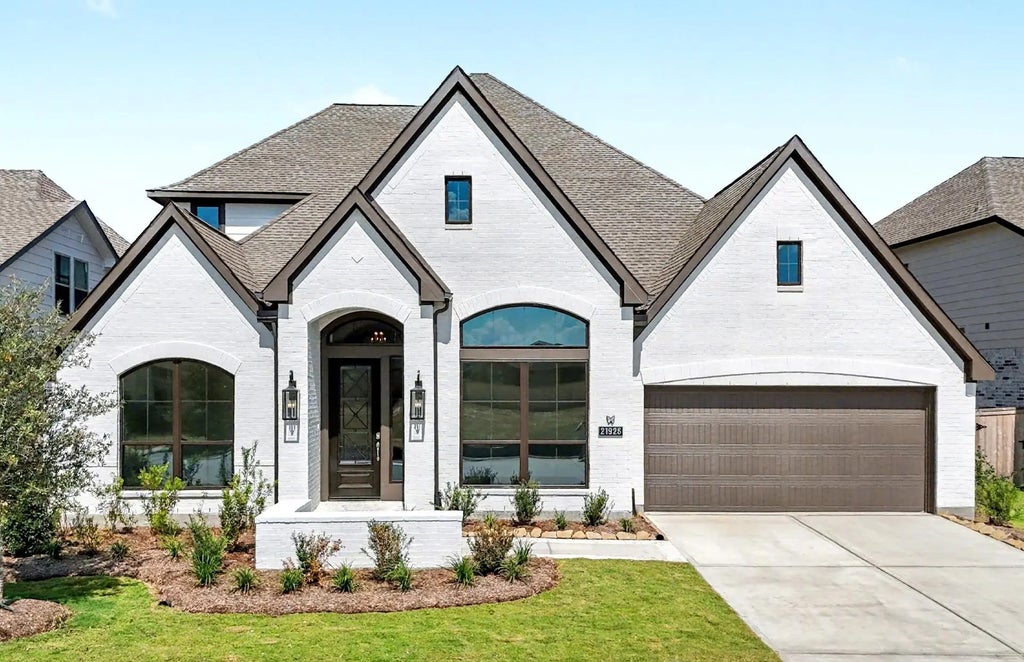 1½-story floor plan features an elegant oval entry with 13' ceilings that open to the formal living room. The extended entry with a 12' ceiling is flanked by formal dining room on one side and kitchen on the opposite side. The kitchen is central to the home and open to the dining room, breakfast room and family room. It features a large island and 42" cabinets. The family room features a 14' ceiling, 78" electric fireplace, and large wall of windows. The 20'x16' master bedroom leads into a luxurious master bath complete with a freestanding tub, separate shower and His and Hers vanities. Located upstairs is a game room, 5th bedroom, and full bath.