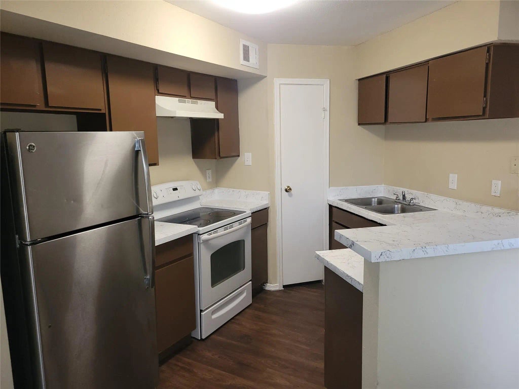 Nice Spacious one bedroom one bath upstairs condo with large storage room. This condo features open kitchen concept with a bar area. The walk in closet is something to die for your wardrobe. Vinyl plank flooring throughout. This condo is centrally located 10 minutes from I45, 610 North, Sam Houston Tollway, and US HWY 290