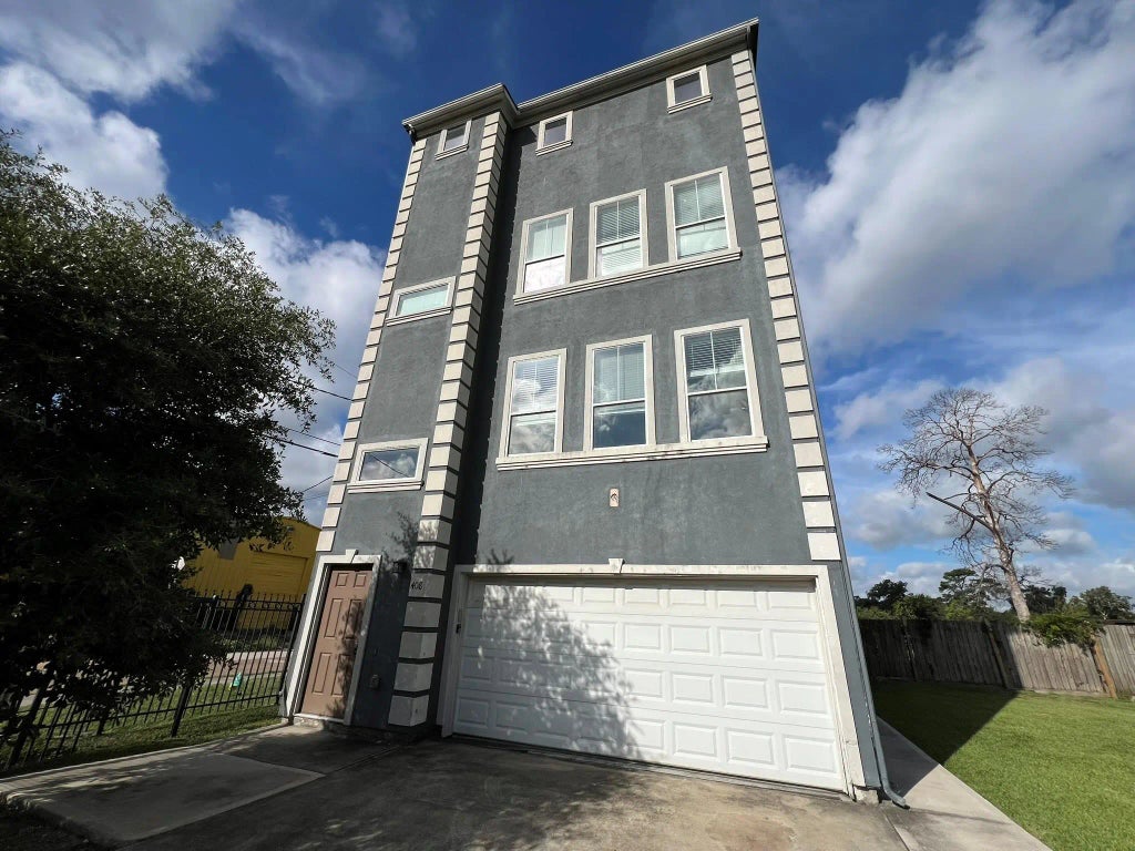 Living in this 4-story townhouse, complete with private fenced backyard and a rooftop terrace with skyline views. The kitchen is equipped with stainless steel appliances, wood-stained cabinetry, and opens to a living area with a fireplace. The third-floor suite features a shower, dual vanities, a Jacuzzi tub, and a closet. The fourth floor, you'll find a landing area, along with a storage/utility room that can be converted into a fourth bedroom or flex space.