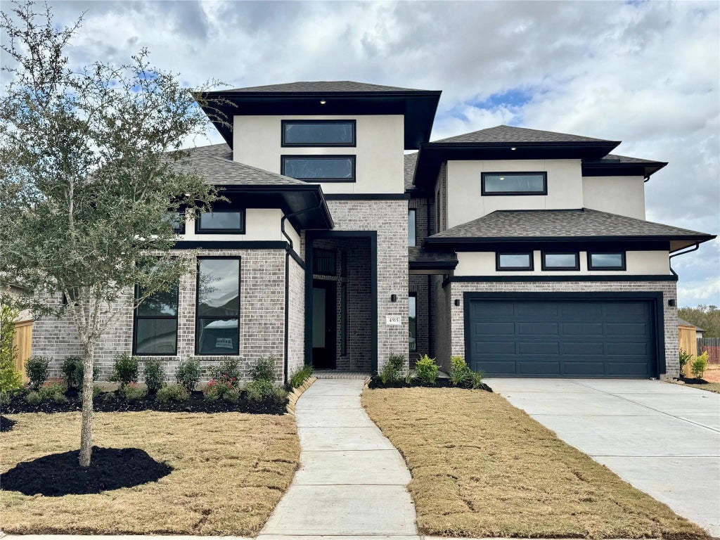Exciting and popular 5 bedroom home, the Vicenza, by Newmark Homes. This home features two bedrooms down including the main suite and a private location for bedroom 2. 8 ft door at the entry and a winding staircase is a striking and elegant look with 8 ft doors throughout the bottom floor. The formal dining room is very open off of the foyer, sliders lead to an open courtyard and upgraded tile floors accent the first level. The kitchen boast a huge island and breakfast bar highlighting porcelain counters with a waterfall edge and beautiful custom cabinetry. Beautiful brushed gold accents for hardware and a shaker vent hood reflects a modern and fresh kitchen. A free standing tub in the main suite, oversize shower and quartz counters all combine for a spectacular retreat. 3 car garage included with this home. Great schools, tranquil community and easy access to the West Park Toll Road make Fulbrook on Fulshear Creek a great area to live.