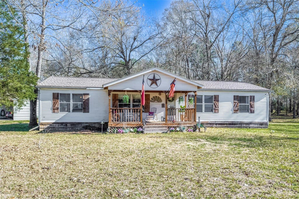 Absolutely adorable home on 1.81 acres in New Caney. Unrestricted area so bring your animals. The possibilities are endless. There are two driveway entrances to the home. This home site also includes a carport, storage shed and oversized garage/storage that's approximately 1100 sq ft. This room can easily be converted to a guest house or hobby room.(has AC window unit) Site can also be sold for commercial purposes as well.