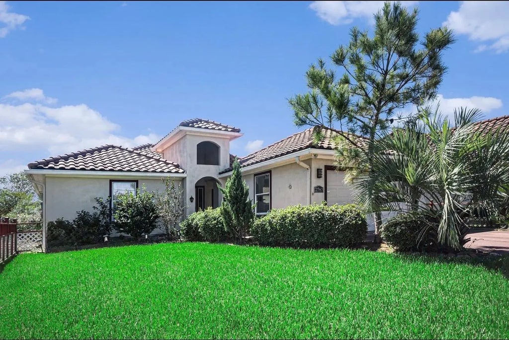 Looking for a beautiful, Mediterranean-style home with water views? This stunning home offers elegance and relaxation with a modern kitchen, fashionable guest bathroom, and gorgeous primary bathroom with soaking tub. The open floor plan features tile flooring throughout, an island counter, crown molding, recessed and pendant lighting, and a split-bedroom layout for added privacy. Enjoy a backyard complete with a private dock for fishing or unwinding, and a spacious covered patio. Additional highlights include a front gated driveway, covered breezeway with a detached garage. Wall-mounted TVs, kitchen appliances along washer & dryer convey with the property. Located close to Galveston Bay, Kemah Boardwalk, parks & schools. With a huge lot, No HOA, No Flood Zone, this is the one! It’s like being on vacation every day—right at home! Seller is motivated and accepting reasonable offers. Hurry to schedule your showing today to make this dream home yours!!
