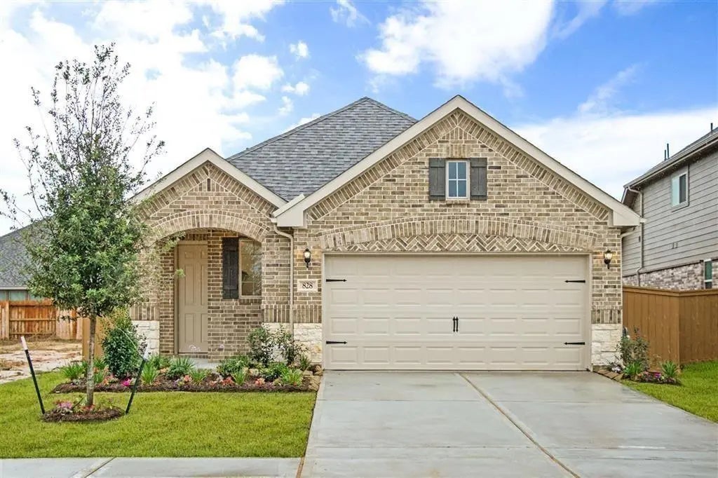 This beautifully designed one-story home offers a light, bright, and open layout that lives large despite its efficient footprint. Enjoy a spacious primary suite, an extended covered patio perfect for outdoor living, and a cozy window nook in the breakfast area. Elegant tray ceilings add a touch of sophistication to the family room and primary bedroom. The neutral color palette features light gray cabinetry, glossy white backsplash, and granite countertops—creating a modern, timeless kitchen.