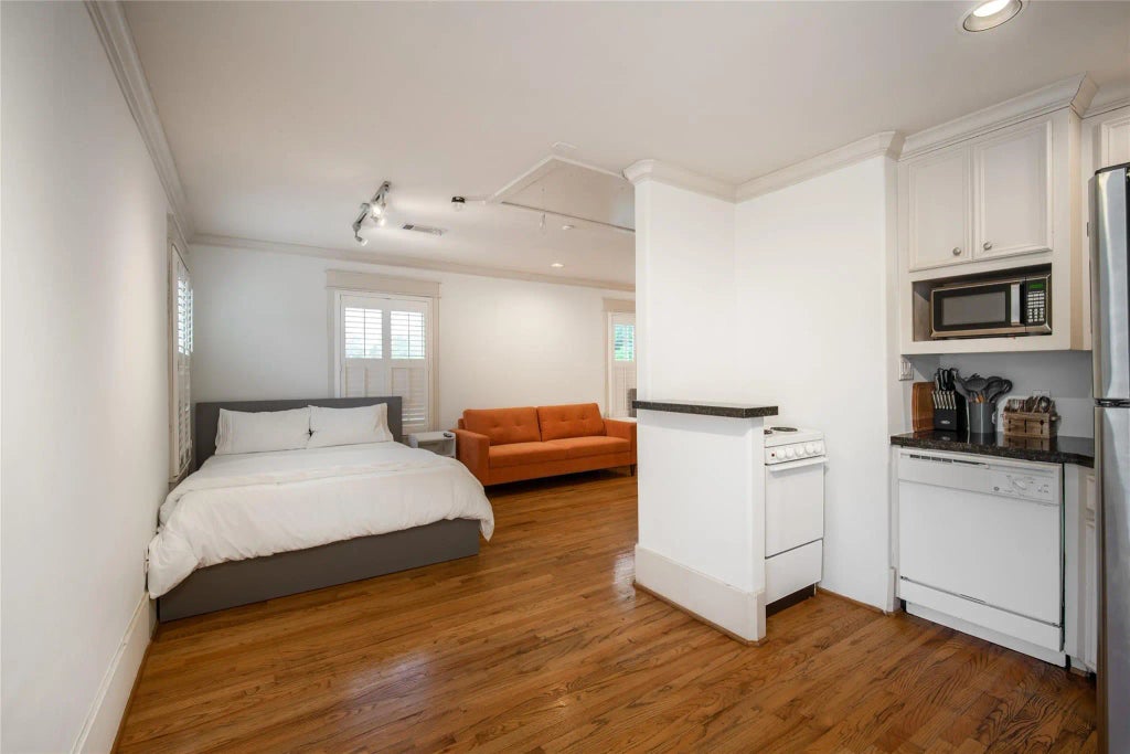 Welcome to our charming garage apartment located in Houston's historic Heights neighborhood! This fully furnished apartment is move in ready for a hassle free move. Our studio features two queen beds and a sofa and a small dinning table. The kitchenette includes a full-size fridge and all the necessary appliances and utensils to prepare simple meals. A 55-inch LCD TV is also provided for your entertainment, along with free WiFi access throughout the apartment. Located directly across from a park and surrounded by historic homes, our garage apartment offers a unique and authentic Houston experience. You'll be just a short walk away from the popular 19th Street boutiques, antique shops, and funky restaurants, as well as the monthly First Saturday Arts Market featuring live music, crafts, plants, and artwork.