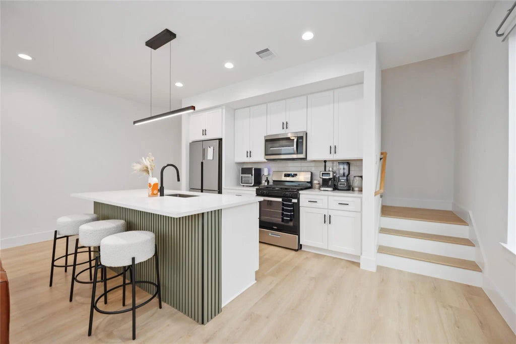 Fully furnished, all utilities included (up to $200) and flexible lease in East Downtown (EADO)! Are you seeking a flexible 6-month stay in Houston? This modern 3-bed, 3-bath duplex unit is your perfect solution! Recently built, it boasts an open-concept living space, a sleek kitchen with quartz countertops, stainless steel appliances, and an oversized island. Enjoy wood-style flooring, recessed lighting, and ample natural light. Fully furnished with an equipped kitchen and bi-monthly laundry service, offering true turn-key living. Exceptionally located with quick access to I-10, Downtown Houston, EADO, and University of Houston – ideal for traveling professionals, digital nomads, or those in transition.