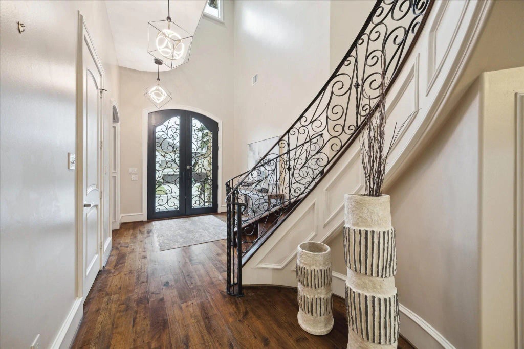 Priced below Market Value!!! Immaculately updated & truly move-in ready, this custom-built home by Remington Builders offers luxury, functionality, & an unbeatable location—just steps from Twain elementary. With 5–6 spacious bedrooms & upscale finishes throughout, it stands as one of the best-priced luxury homes in the area. Enjoy high-end living without compromise—this is exceptional value you won’t want to miss. Enter through 8' wrought iron doors into a stunning foyer with a sweeping 2-story spiral staircase. Light-filled living spaces flow effortlessly, ideal for entertaining & everyday life. The gourmet kitchen features abundant cabinetry, breakfast bar, premium SS appliances, double ovens, gas cooktop with pot filler, & freshly painted cabinets(2/2025). The primary suite includes a spa-inspired bath(renovated 2/2025). Upstairs: 4 bedrooms. 3rd floor: Game room, media room, or optional 6th bedroom. Elevator shaft to all levels. Outside: spacious patio + 2 balconies. A rare find.