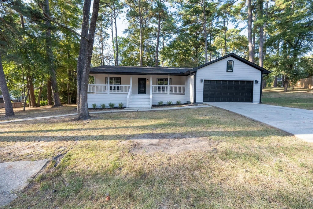 Beautifully renovated 3-bedroom, 2-bath home on two lots totaling over 0.65 acre in the desirable community of Corinthian Point! Built in 2002 and fully updated, this single-story home offers 2,017 sq ft of open living space with a modern kitchen featuring quartz counters, cabinets, and stainless appliances. Bright, open floor plan with spacious living room, high ceilings, and luxury flooring throughout. The primary suite includes a spa-style bath with dual vanities, soaking tub, and walk-in shower. Huge fenced yard provides room for a pool, workshop, or garden. Enjoy quiet cul-de-sac living plus community amenities—pool, tennis, marina, and clubhouse—minutes from Lake Conroe and I-45. Truly move-in ready!