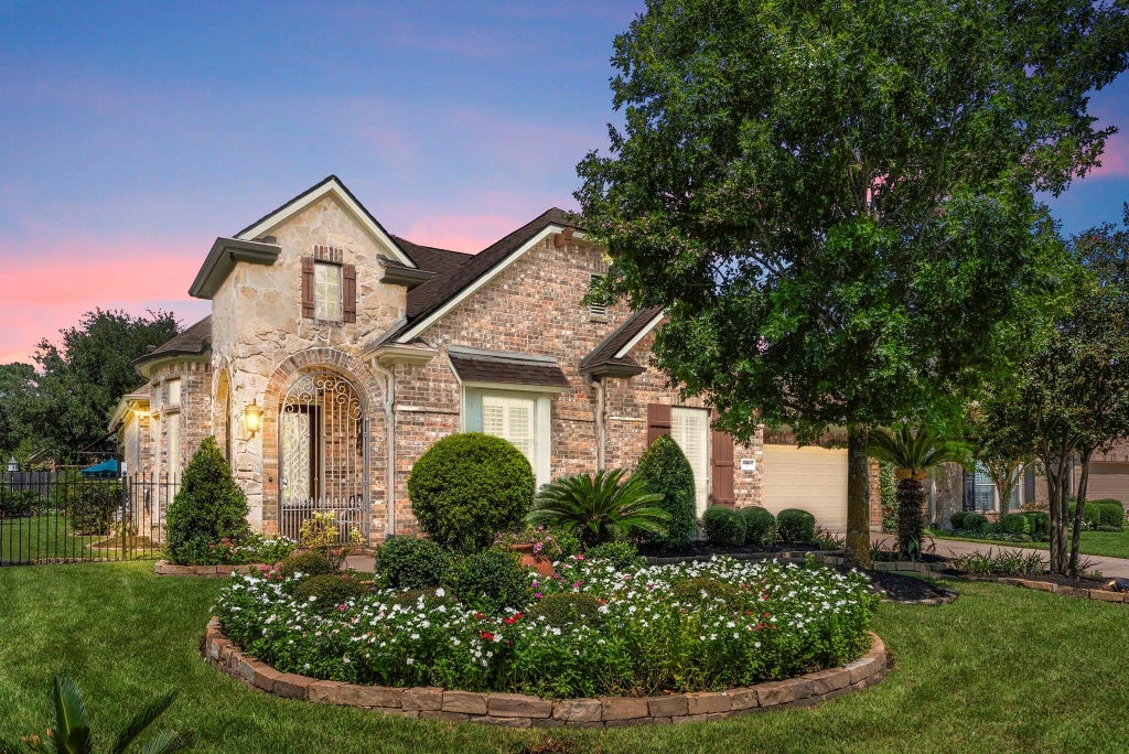 Coveted front of The Woodlands in Grogans Forest, this Darling-built 1-story 3/2.5/2 combines timeless elegance & thoughtful design. Gated front porch entry & brick/stone exterior welcome you into light-filled interiors w/soaring ceilings, crown molding, tile flooring & open flow. Formal dining & private study set the tone, while the spacious family room w/gas log fireplace overlooks the backyard oasis. Chef’s kitchen features granite, rich wood cabinetry, SS appliances, large island & breakfast nook w/patio access. Retreat to the serene primary suite w/tray ceiling, laminate wood floors, dual sink vanities, jetted tub, walk-in shower & expansive closet w/laundry room access. Built-in study nook outside primary suite. Outdoor living shines w/covered patio, summer kitchen, built-in shades & sparkling heated pool/spa. Epoxy garage w/attic walk-up, newer roof, French drains, sprinklers & privacy trees. Mins to Hughes Landing, Market St, The Pavilion & I-45—unbeatable location & lifestyle!