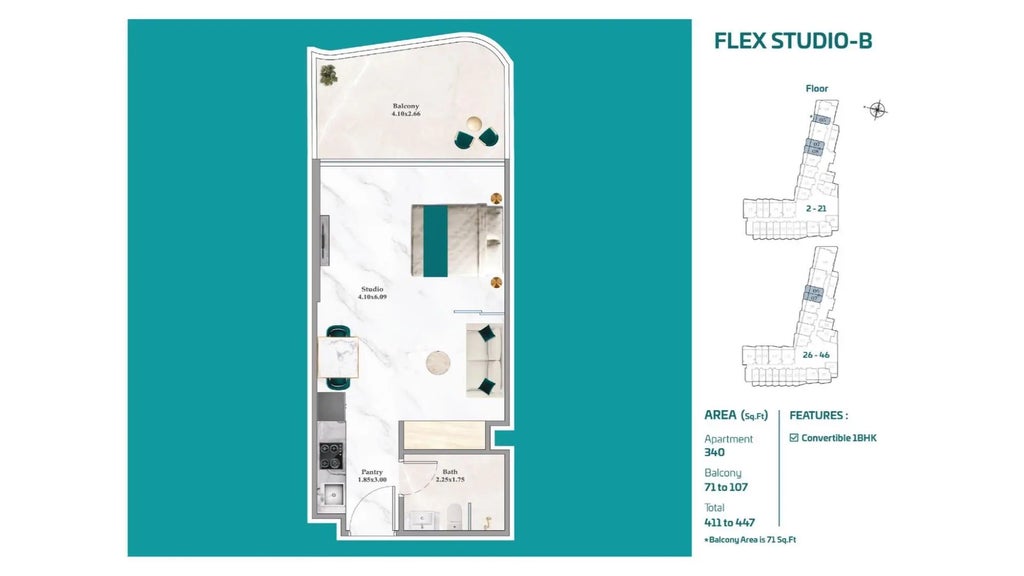 Opportunity to own a new high-rise condominium in Dubai. Breez by Danube is a premium 60-floor waterfront residential tower in Dubai Maritime City. Inspired by seaside serenity and elevated living with over 40+ resort-style amenities including infinity pool, blue lagoon, kids splash pool, kids playground and water lounges. More than 40 floorplans available at different price points offering leisure, wellness and family living. Floor plans displayed are the Flex Studio offering Marina Sea View, Skyline Sea View or Panoramic Sea View. Please reach out for additional information.
