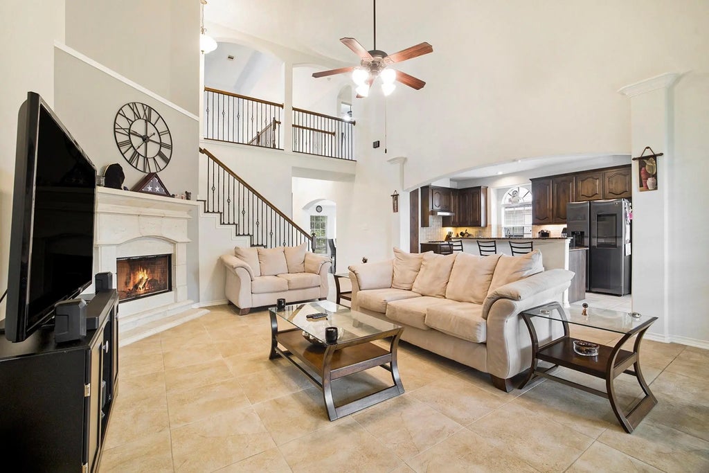Located inside Oakhurst’s golf course community, this 5 bed, 4 bath home delivers the kind of flexibility today’s buyers seek. A downstairs flex room sits next to a full bath, perfect for guests or a quiet office retreat. Soaring ceilings, arched walkways, and natural light create a warm, open feel the moment you enter. The kitchen features granite counters, electric cooktop, walk-in pantry, and 42" cabinets. Ideal for gatherings or weeknight routines. Upstairs, a spacious game room connects three bedrooms and two full baths. The primary suite is a true retreat with wood floors, bay windows, and a spa style bath with tub and dual vanities. Sizeable backyard, tile/wood floors down, and quick access to Hwy 59, HEB, & Bush Airport make this home a smart, stylish, and practical move for any stage of life. Outside, residents enjoy parks, greenbelt trails, a competition size pool, a clubhouse, and the signature Oakhurst Golf Club.