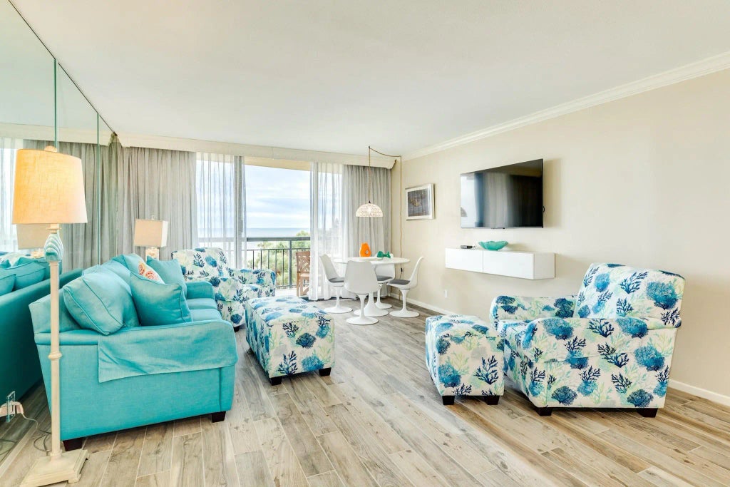 THIS IS A 1/4 SHARE. Welcome to the San Luis Resort, a whole world of its own! With so many amenities & activities to do inside the resort, you would never need to leave, except to go to the beach right across the street! This newly refurbished beach front resort condo 1 bed 1.5 bath with an open living room & 2 separate ocean facing balconies. One bedroom/1.5 bath units are & feel much larger than 1 bedroom/1 bath units with more windows and larger living room, kitchen and bathtub. Resident amenities include: full service spa & beauty salon, pool with swim up bar, gym with steam room, 2 clothing stores, 3 delicious restaurants, room service, hot tub, tennis courts, Concierge, Sundries shop & ice cream bar! Maintenance fees include: insurance, trash, water & sewer, housekeeping services, cable, internet, phone, utilities, refurbishments, replacements & repairs-buyer to confirm maintenance fees & services with condo management.