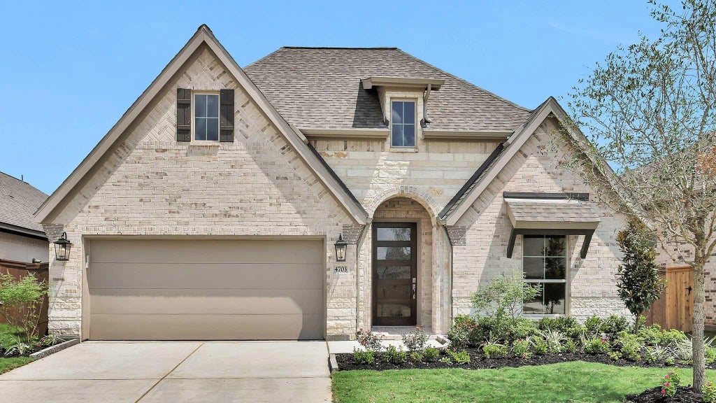 READY FOR MOVE-IN!! - Home office with French doors set at entry with 12-foot ceiling. Extended entry leads to open kitchen, dining area and family room. Kitchen features corner walk-in pantry, 5-burner gas cooktop, generous counter space and island with built-in seating space. Dining area flows into family room with a wood mantel fireplace and wall of windows. Primary suite includes double-door entry to primary bath with dual vanities, freestanding tub, separate glass-enclosed shower and two large walk-in closets. A guest suite with private bath adds to this spacious one-story home. Extended covered backyard patio. Mud room off two-car garage.