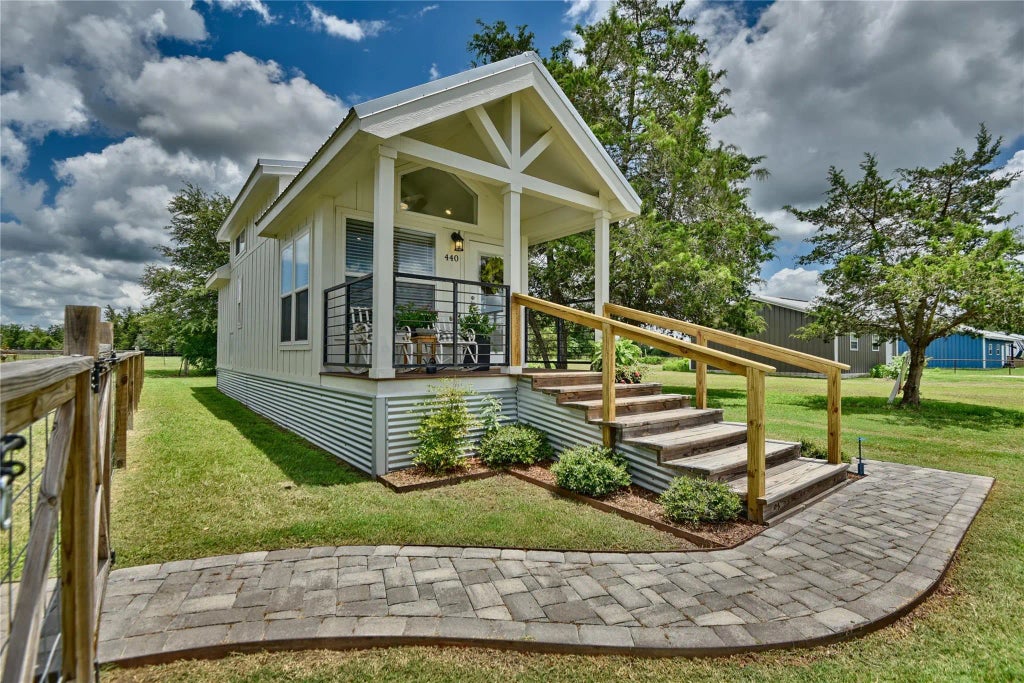 This tiny home sits on .238 acres of land. Talk about curb appeal! This well maintained tiny home has a welcoming front porch and fenced in yard. Perfect for your weekend getaway or home when you are in Round Top Carmine areas for the antique show. There is one bedroom and one bathroom on the first floor, then upstairs has a loft that's open to the living areas downstairs. This farmhouse feel is the perfect setting. There is a shed in the fenced in yard that has a mini split system for cooling and heating. Water and sewage are through the City of Carmine. Electrical is Bluebonnet Electric Coop. There are no seller's disclosures since the tiny home is not attached to the property.