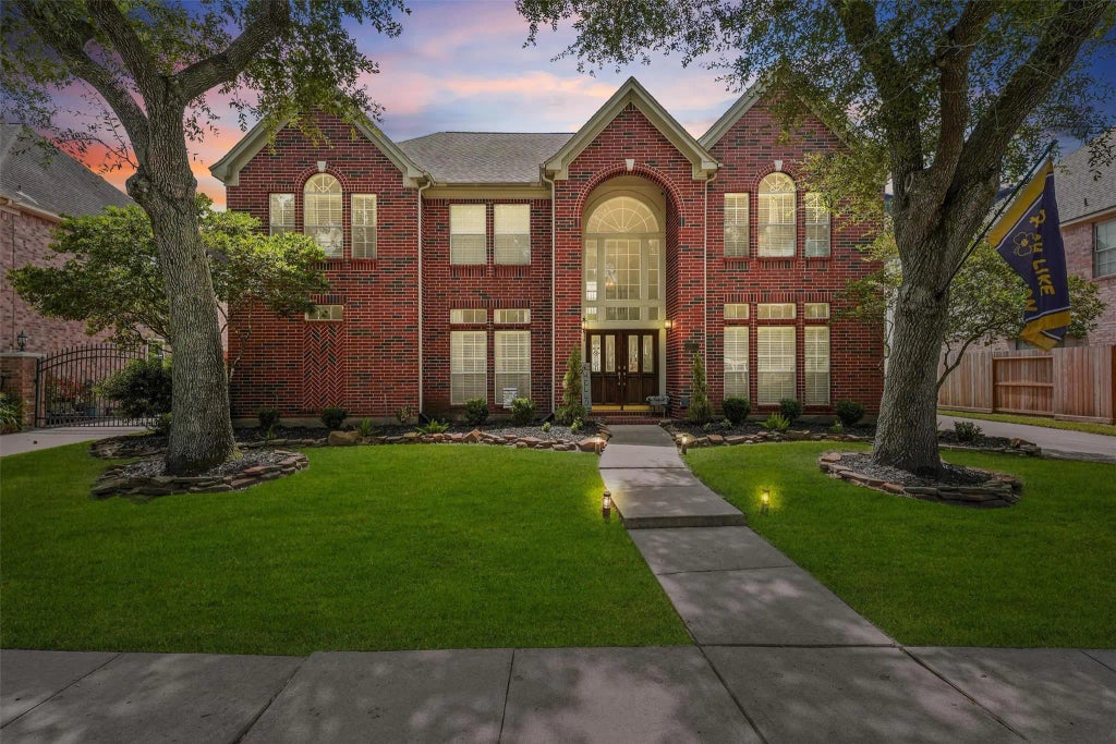 Welcome to this stunning & spacious home w/pool in the desirable Pine Brook community, directly across from the park, pool, tennis courts, basketball & pickleball courts! This 5-bedroom, 3.5-bathroom home offers a versatile layout ideal for everyday living and entertaining. The first floor features a formal dining room, private office w/ French doors, & an open-concept kitchen & living area filled w/natural light. The kitchen includes ample cabinet & counter space. The downstairs primary suite offers an ensuite bath & a large walk-in closet. Also on the main level a half bath & utility room. Upstairs boasts a spacious gameroom, media/family room, 4 additional bedrooms, & 2 full baths — including a convenient Jack and Jill. Step outside to your backyard retreat w/ a sparkling pool & relaxing hot tub, both just 3 years old! The oversized garage provides extra storage, and the fully fenced yard was replaced in 2025. Don’t miss your chance to own this incredible home in a prime location!
