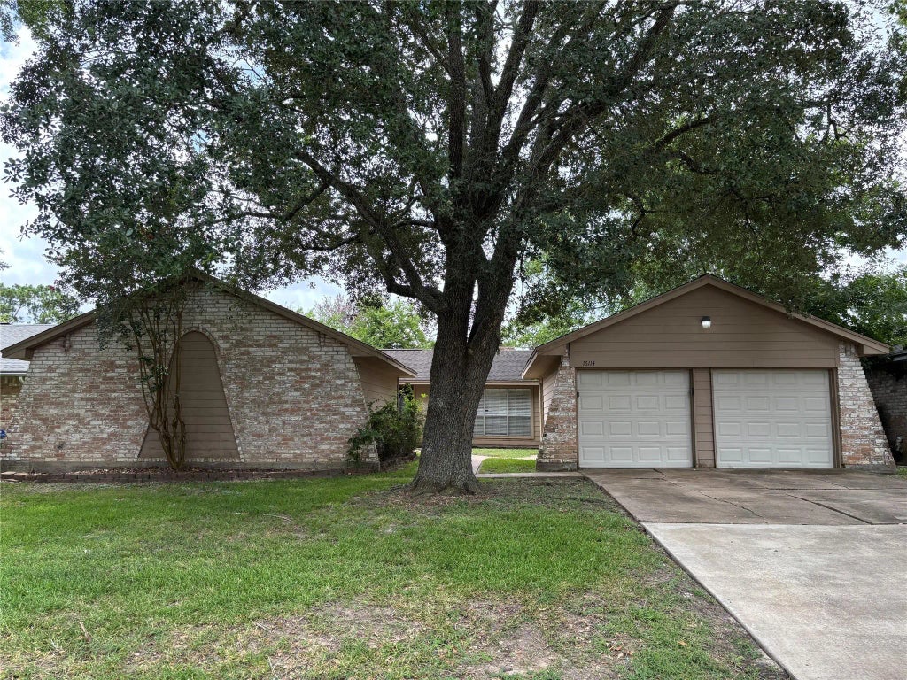 Move right in to this single-story brick home in Friendswood community offering a bright, vaulted living area anchored by a classic brick fireplace and wide-plank luxury vinyl flooring. The galley kitchen features granite counters, tile backsplash, white cabinetry, and stainless appliances, and ample space to entertain! A private primary suite includes dual closets and an updated en-suite bath, while two secondary bedrooms share a full hall bath. French doors open to a concrete patio and fully fenced backyard, perfect for grilling, entertaining, or play. A newer Goodman condenser helps keep summers comfortable, and the attached two-car garage provides ample storage or workshop space. Enjoy the convenience of Friendswood living with quick access to shopping, dining, entertainment, and major highways for easy commutes and nearby parks and recreation! Schedule your showing today!