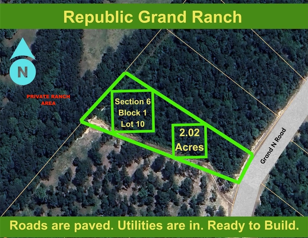 2.02 ACRES > PROPERTY BACKS UP TO PRIVATE RANCH, NO LOTS BEHIND > MATURE MIX OF TREES > Located on the outskirts of Willis with great schools and nearby shopping. Large lot wooded community with gentle rolling hills. Peaceful privacy. You will never be crowded by neighbors. Republic Grand Ranch is a large lot, wooded community in the rolling hills. Country lifestyle for your custom forever home. Trees, paved roads, water, HIGH SPEED fiber optic internet & underground power through out. Covered pavilions, parks, ponds, playgrounds, BBQ areas. Minutes from shopping, dining, schools, hospitals, and entertainment. Low taxes - No MUD tax. Average elevation is 400’ ASL. Plenty of greenspace and trails for hiking, biking and horseback riding.
