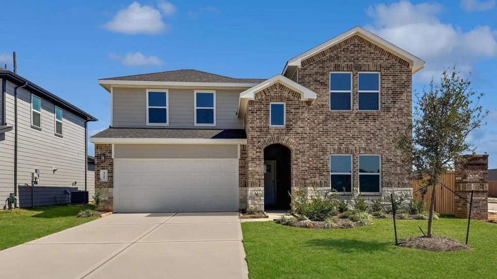 Welcome to D.R. Horton's Ozark floorplan, located in the beautiful community of Tamarron. This 2 story floorplan has many great and unique features to offer across its 2475 sqft, including 4 bedrooms (2 up, 2 down), 3 full bathrooms, and an upstairs game room. This home opens up into the open concept kitchen, living and dining area featuring granite countertops, stainless steel appliances, and large windows looking out into the covered back patio perfect for entertaining. adjacent to the family room is the primary suite with standing shower, bathtub and dual sinks. Upstairs you will find the remaining 2 bedrooms as well as the large gameroom. LVP flooring can be seen throughout the home. The more traditional face of the home is constructed of stone and brick. Tamarron is the place to be, with great community amenities and great location in the growing city of Fulshear. *Images and 3D tour are for illustration only and options may vary from home as built.