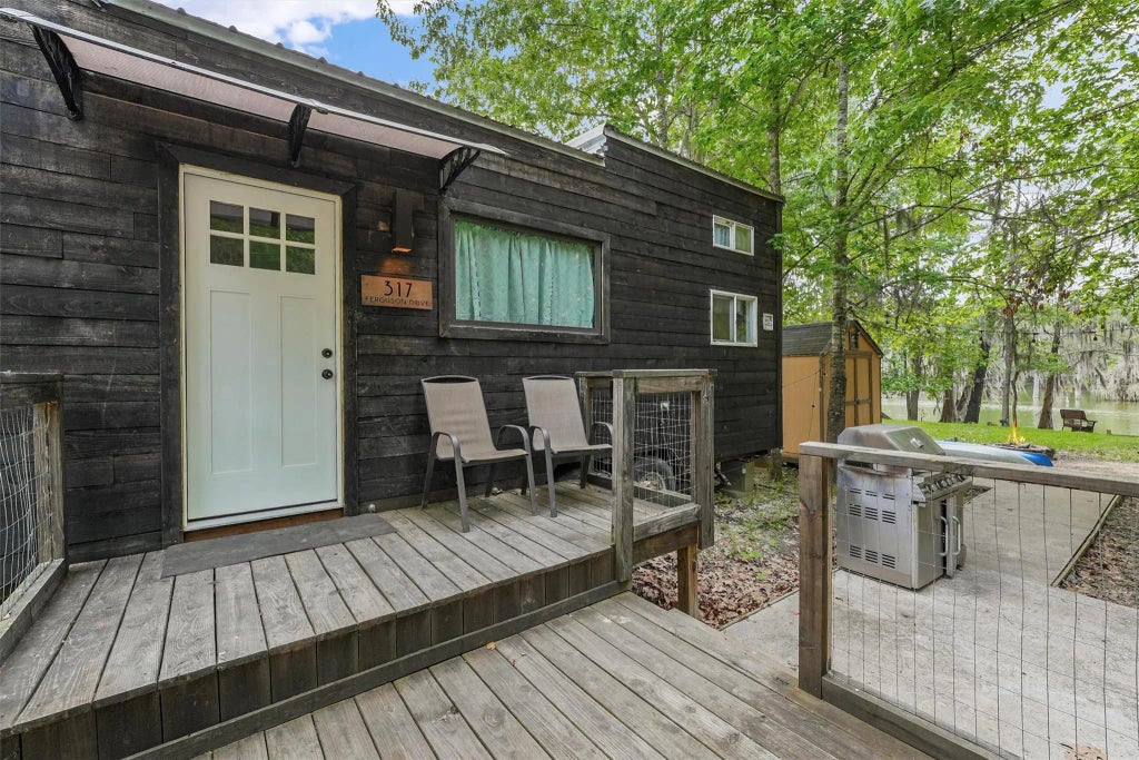 Must see this amazing lot!! It comes with a super cute tiny home that sits right on the edge of a beautiful lake, with a stunning view. This lot with tiny home offers everything you need for a comfortable stay such as cozy living space, a quaint kitchenette and snug loft bedroom with a comfy bed. The decor is minimalist, with a rustic wooden accent that adds warmth and charm to the tiny home. This lakefront property is nestled amongst towering trees surrounded by natural beauty. It provides a great escape from the hustle and bustle of the everyday life. All in all, it's the perfect spot for a romantic getaway or solo retreat in nature. It's also complete with all utilities, water, sewer and electric. Square footage and dimensions are approximate. Also, TINY HOME IS FULLY FURNISHED!! Just as seen in the pictures. It is also a turnkey investment as it is currently being Airbnb'd. Income/Operating cost will be attached.