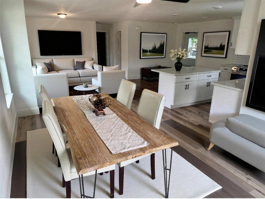 Charming 1-story home with 4 bedrooms, and 2 bathrooms. Recently renovated with a brand-new kitchen featuring quartz countertops, stainless steel appliances, and updated bathrooms with modern fixtures. Enjoy the beautiful living space, high ceilings, and all-new floors throughout. New AC unit, Roof, PEX Pipe & Windows. Move-in ready for a seamless transition to comfortable living. The huge backyard is great for entertainment