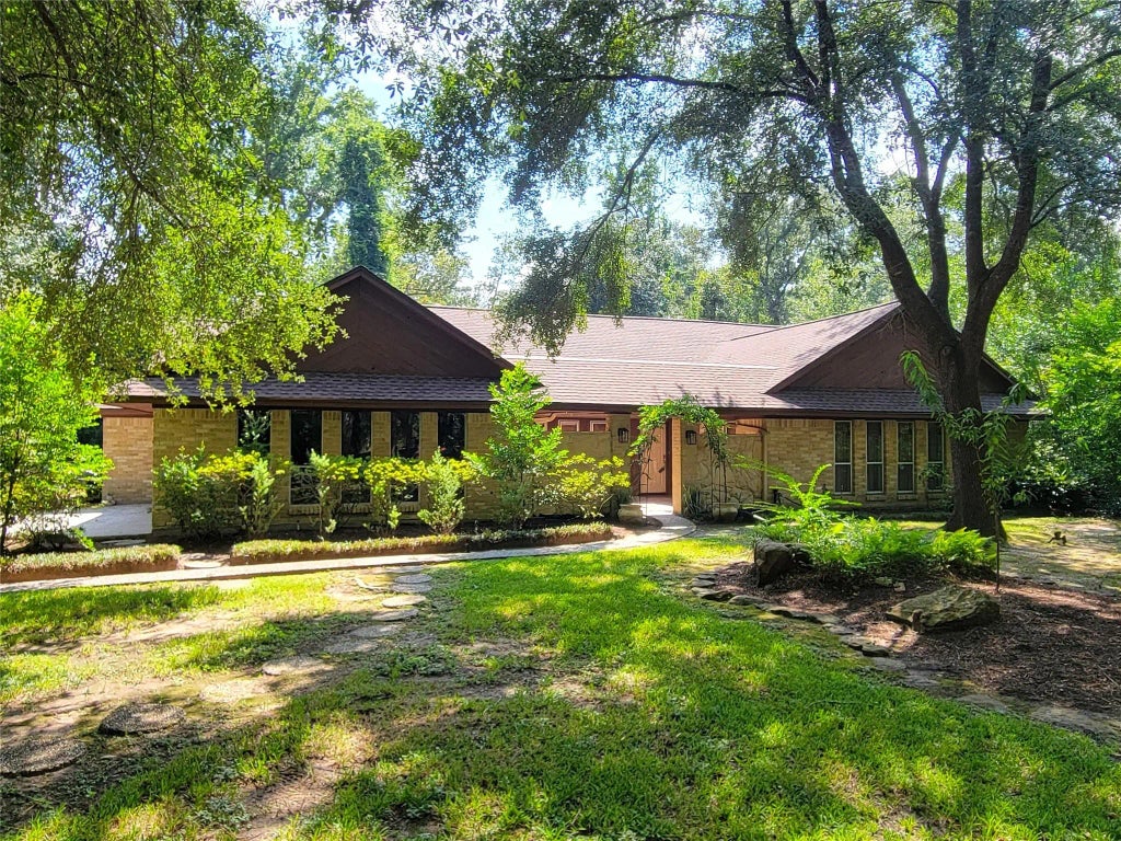 THIS IS THE ONE!! BEAUTIFUL home on nearly 3/4 acre in a peaceful, park-like setting. Designer finishes are evident throughout this home. TWO LIVING AREAS. The living room with gas log fireplace flanked by built-in shelves and a wall of windows looking onto Monticello Park. This home is PERFECT FOR ENTERTAINING! The family room w vaulted ceiling opens to the HUGE patio and the ISLAND KITCHEN, which boasts ABUNDANT CABINET SPACE, GRANITE, BUTLERS PANTRY, and SS appliances for the chef in the family. HOME OFFICE / STUDY. DRAMATIC DINING ROOM w beamed ceiling and view onto the courtyard. Primary bedroom w French doors opening onto the patio and backyard, en-suite bath and CLOSETS GALORE! FRESH PAINT THROUGHOUT, NEW WHITE-OAK ENG.WOOD FLOORS in living room, dining room, office, and primary bedroom. NEW carpet in guest bedrooms. KOHLER WHOLE HOUSE GENERATOR. NEW ROOF in 2025. SPRINKLER SYSTEM. Quiet neighborhood with many amenities, Easy access to I-45, dining, shopping, and Lake Conroe.