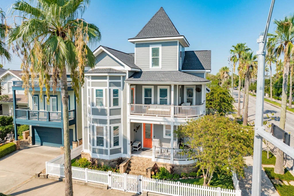 You'll enjoy this home's unique blend of timeless elegance, modern comfort, & relaxed coastal charm in Galveston’s historic Silk Stocking District--renowned for its rich cultural heritage & vibrant community. Built in 2005, this 3-bed, 3.5-bath Victorian-style home blends beautifully with the neighborhood’s classic architecture. Located on grand, tree-lined Rosenberg Blvd, it’s near the Seawall, Pleasure Pier, The Strand, Cruise Port, & on the Mardi Gras parade route—watch the festivities from your balcony! The spacious primary suite offers a large bath, walk-in closet, & flex space w/ soaring ceiling. The private backyard features a heated pool, gas fire pit, outdoor kitchen, shower w/ on-demand hot water. Highlights include engineered wood flooring on the 1st floor & primary suite, plantation shutters, gas range, stainless appliances, beverage fridge, oversized 2-car garage, solar panels, impact windows, fiber-cement siding, irrigation, low-maintenance landscaping, & high elevation.