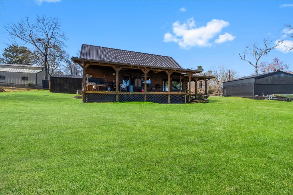 Must see this one of a kind on Lake Livingston, an enchanting log cabin, it is a rarity to call your own. Sits on nearly 1 acre waterfront lot with 144-ft bulkhead and approximately 7 to 8 feet deep at the back of boat house, boat lift, boat dock. The modern comforts and character open a great place to enjoy life on the lake. The open concept living area is full of natural light for enjoyment. Step outside onto the open porch that wraps halfway around the house to see the stunning view of the lake. If you’re enjoying a morning coffee or dinner, it's a peaceful home atmosphere that is unparalleled to most other homes. No hoses needed just let 36 head sprinklers system water the yard from the lake. The yard is full fence, a solar-gate, concrete driveway, 2 car carport and a tool storage shed with electricity. The 34 x 34 workshop, A/C & heating, Wi-Fi, water, 2 10 x 10 ft roll up doors, and a car and motorcycle lift. Don't worry about losing electricity, it comes with a generic.