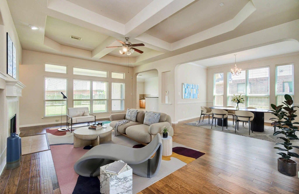 **Home is Monitored by Security System, Brand New Roof (Aug 2025), Exterior Power-washed (2024), HVAC (2020), Engineered Wood Flooring (2016), Zoned to Clements High School, Low HOA** Welcome to Telfair, the famous master planned community in Sugar Land. Property is off 59/I-69, located just minutes away from destinations such as Costco, 85 Degree Bakery, First Colony Mall, Sugar Land Town Center and more. This beautiful one story home features high ceiling throughout the entire home, 3 large bedrooms, a study that can be turned into a 4th bedroom, 2 full baths; the primary suite has a luxurious whirlpool bathtub and a separate stand-up shower. Spacious, open concept floor plan with no carpet, 4-sided brick elevation, gas log fireplace, oversize kitchen island with granite counter top, oversized back covered-patio and more. Community playground, and splash pad (Swimming pool) is a few houses from the property. Call us or your agent for a private tour today!