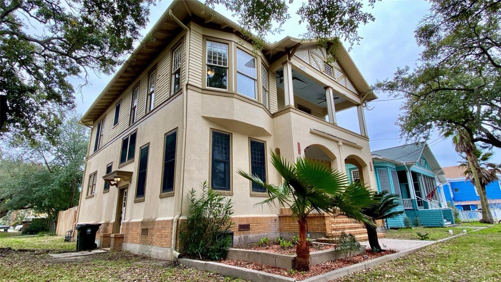 A historic gem near the Seawall, this 1906 Craftsman property seamlessly blends classic charm with modern conveniences, making it an excellent investment for short-term rentals. Admire original Craftsman details like crown moldings, hardwood floors, and expansive windows. With 4/5 bedrooms, 3 baths, and a 3-level elevator, there's ample space for comfort. Convert the parlor into a 5th bedroom with a full bath on the first floor and enjoy a sun room connected by glass doors to the dining room. Outside, a swimming pool awaits for outdoor fun. Only blocks from the Gulf of Mexico, this Galveston home offers the perfect coastal experience. Schedule your tour today.