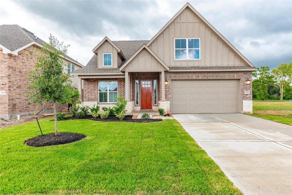 ***Fantastic 4 Bedroom Waterfront Beauty*** 1.5 Story. New Construction. Located in Desirable Centennial Oaks in Santa Fe. All Sides Brick. Solid Construction! Beautiful Curb Appeal w/ Extended Front Porch & Over-Sized Covered Back Patio. Awesome Open Floor Plan. Tall Cathedral Ceilings. Gorgeous Chef's Island Stainless Kitchen. Side by Side Refrigerator Included. Huge Quartz Island w/Premium Appliances & Recessed Lighting. Undercabinet Lighting. Abundant Soft Close Cabinetry. Walk In Pantry. Large Breakfast Area. Gas Log Fireplace. Living Room Shelves & Built-In Cabinetry. Master Retreat w/Cathedral Ceilings, Dual Vanity Sinks, Large Walk-In Closet. Huge 4th Bedroom Upstairs. Could Be Used as Game Room, Bonus Room, Office. Super Energy Efficient. Radiant Barrier Shield. Tankless Water Heater. Oak Trees in Front & Back Yard. Wrought Iron Fencing w/Gate. Large Extended Covered Back Patio Opens Up to the Lake & Water Fountain! Amazing Community. Super Low Taxes! No MUD Tax!