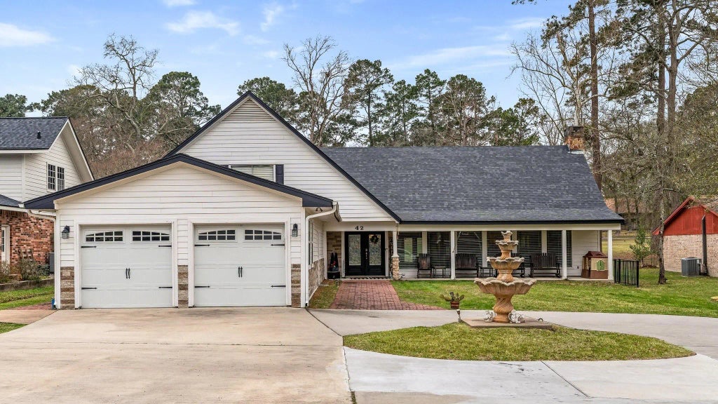 This home is a "must see" with every space beautifully designed. Situated on Panorama Golf Course near I-45, this ranch-style home provides convenient access to shopping, dining, and Lake Conroe. Featuring updated interiors and a custom feel, the property showcases exquisite architectural elements and a functional layout. The living area boasts a soaring beamed ceiling and a charming stone fireplace, ideal for entertaining. Enjoy the expansive screened-in heated pool and outdoor kitchen for hosting guests. This home has so much to offer, complete with a generator, bountiful storage space. The roof and AC units are approx. 4 years old. This home effortlessly combines elegance and practicality in a well sought-after location.