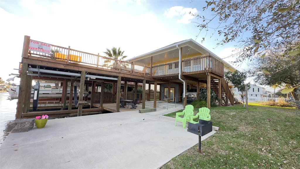 Motivated Seller has Beautifully remodeled 3 BR, 2 BA with AC bonus room 1/2 BA down, waterfront home in Jamaica Beach with extensive upgrades inside and out. Built in 1998, renovated 2012, two boat docks, (one with a lift), concrete patio with ADA ramp to water. Exterior upgraded with Hardie plank siding, fresh paint (2025), and a CRRC-rated cool roof that reduces attic temps by 50 degrees in the summer. Roof temperatures average just 125 degrees, increasing longevity and lowering energy costs. Interior updates include engineered Rose Acacia hardwood floors (2025), repainted walls, new interior hardware, and stainless-steel appliances, with granite counter tops in the kitchen. Main bathroom features a skylight and includes updated tile and trim: Laundry room, 4 built-in bunk beds, garage, outdoor showers, new ceiling fans, dog run, storage shed, kayak rack, outdoor showers, parking for 7. Located near city park, pool, public boat launch. Ideal living for vacation or investment.