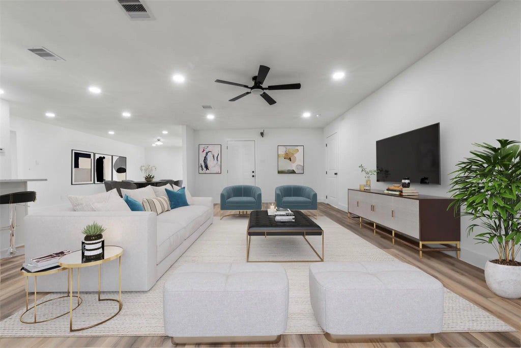 Completely renovated down to the studs! This 4-bedroom, 3-bath home in the East End offers a brand-new roof, HVAC, electrical, plumbing, and windows; everything has been redone. The open-concept floorplan features a spacious living, dining, and kitchen area perfect for entertaining. The kitchen includes white shaker soft-close cabinets, quartz countertops, subway tile backsplash, and modern finishes throughout. All bathrooms are fully updated with contemporary tile and fixtures. Generously sized bedrooms and a functional layout provide flexibility for families or roommates. Located minutes from downtown, University of Houston, and major freeways, this move-in-ready home sits in a rapidly developing neighborhood. A must-see for buyers seeking modern updates with long-term value!