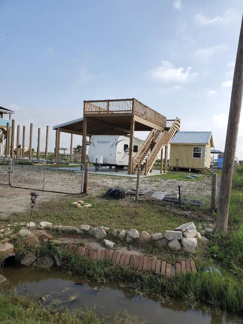 Canal front lot in Canal City on Boliver Peninsula. The canal leads to the Intercoastal Waterway and all the bays. A fishermen's dream! The Gulf and beach are just across Highway 87. Recent improvements by the owners include fencing of the property with a gate installed, installed water and power and septic, 22 truckloads of dirt and 20 tons of crushed concrete for the driveway. Have also added a fish cleaning station with a sink. The bulkhead is coated sheet steel piling. The Canal City subdivision offers a private beach that that has a gate with a lock and key two fishing docks for residents and two boat ramps. New RV Cover with deck on top - WPI8 approved. New 10X10 shed. RV not included - has been sold.