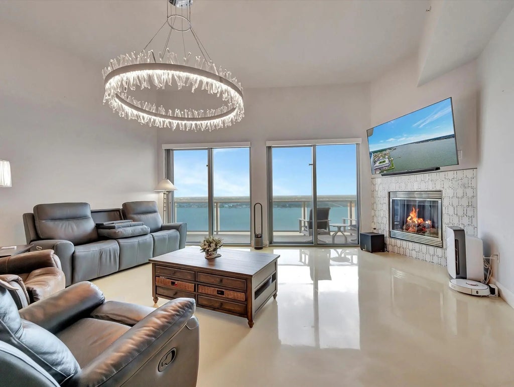 LAKEFRONT HIGH-RISE CONDO REMODELED WITH DESIGNER TOUCHES THROUGHOUT. SPECTACULAR LIGHTING, (SWAROVSKI AND OTHER CRYSTAL FIXTURES), UPGRADED HARDWARE, QUARTZ COUNTER TOPS, SUBZERO REFRIGERATOR,WOLF STOVE/OVEN, BEVERAGE FRIDGE, MAINTENANCE FREE FLOORS, 12 FT. CEILINGS WITH CEILING TO FLOOR WINDOWS WITH ELECTRONIC SOLAR SHADES. SOUTH BALCONY, OFF LIVING AREA, NORTH BALCONY OFF SECONDARY BEDROOM. FLOOR SPACE MAXIMIZED WITH EXTRA CUSTOM STORAGE, HIGH END STAINLESS APPLIANCES, EPOXY MAINTENANCE FREE FLOORS THROUGHOUT, LAKE VIEWS FROM ALL ROOMS, LIGHT AIRY NEUTRAL WALLS, SPRINKLER SYSTEM. UPGRADED HIGH EFFICIENCY HVAC. AMENITIES INCLUDING INFINITY POOL AND SPA, PARTY ROOM, MEDIA ROOM, 24 HOUR FITNESS ROOM WITH DRY SAUNA, INDOOR RESISTANCE POOL, 24 HR CONCIERGE, VALET. MANAGER ON SITE, TWO RESERVED PARKING SPACES PLUS A LARGE PRIVATE 2/3 CAR GARAGE IN BASEMENT