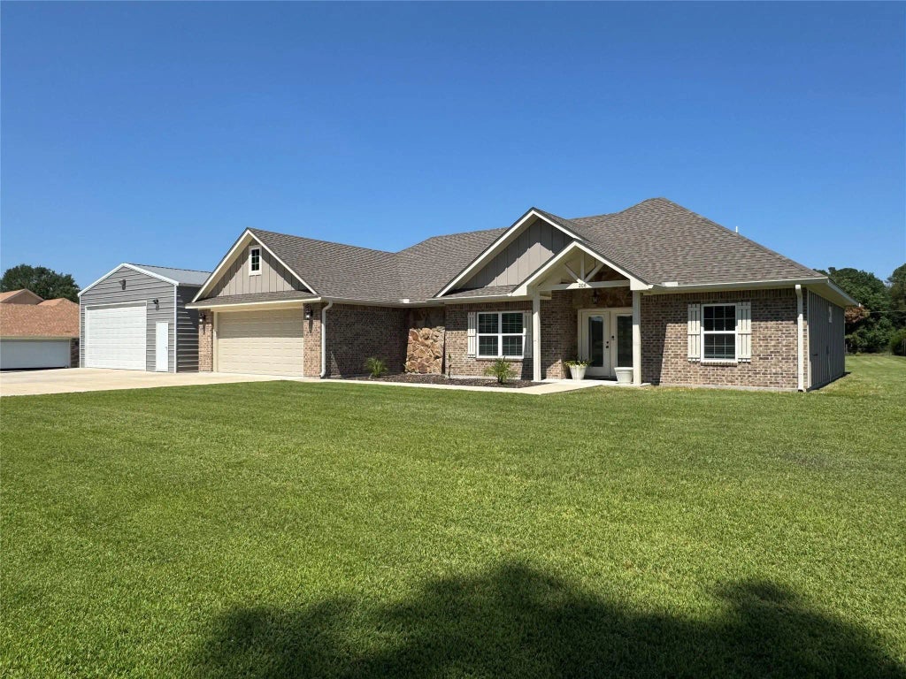 Exquisite Custom-Built Estate on 1.03 Acres with Premier Shop. Completed in 2023, this 4 bedroom, 2.5 bath residence showcases 2,040 sq ft of refined living with a split floor plan designed for both comfort and style. Soaring ceilings and a gas fireplace highlight the spacious living room, while the chef’s kitchen boasts a large island bar, pot filler, and walk-in pantry. The primary suite is a true retreat, featuring double sinks, plenty of storage and expansive walk-in closet. A generous laundry room, 2-car garage, and inviting covered front and back porches add to the home’s appeal. The 1,500 sq ft shop offers roll-up doors and a workstation—ideal for hobbies, storage, or business use. Nestled on a quiet street and only 30 minutes to Lake Sam Rayburn, this property delivers a rare blend of elegance, functionality, and lifestyle.