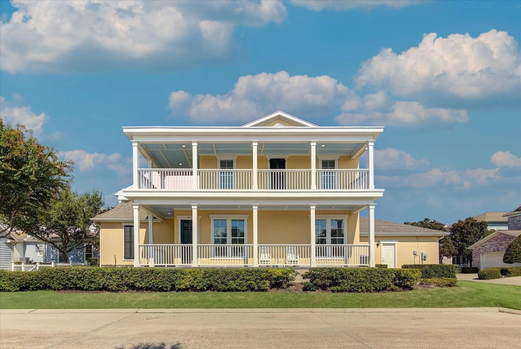 Beautiful townhome in the desirable Evia community on Galveston Island. This 3-bedroom, 2.5-bath home with a 2-car garage features a spacious floor plan with the primary suite on the main level, complete with a soaking tub, large walk-in closet, and built-in chest of drawers. Upstairs offers a generous landing area ideal for entertaining, along with two bedrooms and a shared bath. Interior highlights include engineered wood flooring, new carpet, under-cabinet lighting, and an electric built-in fireplace that enhances the living area. The 2-car garage provides private parking and additional storage. Covered porches offer peaceful lake views and glimpses of local wildlife—perfect for morning coffee or evening sunsets. Residents of Evia enjoy a community pool, neighborhood amenities, and a short walk to Evia Village with shops and restaurants. Schedule your showing today to experience this Evia gem!