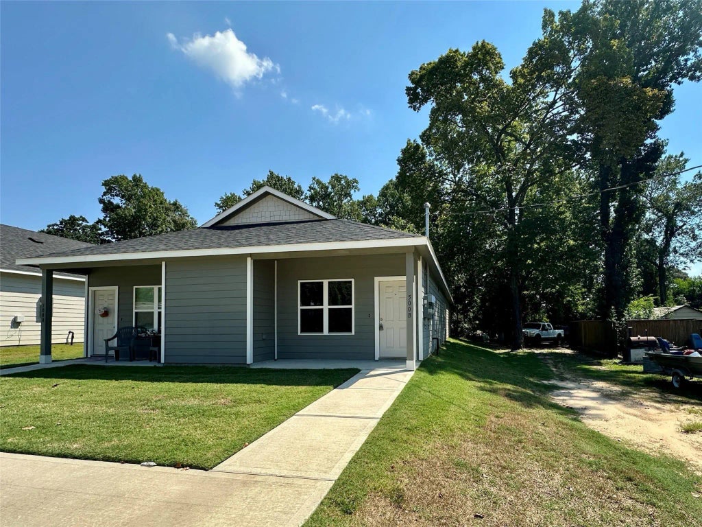 This newly built single-story duplex in Willis, TX, has never been lived in and features three bedrooms and two full bathrooms. The home showcases high-quality flooring and granite countertops in both the kitchen and bathrooms. It is equipped with energy-efficient recessed lighting (Energy Star/CFL/LED) and boasts nine-foot high ceilings. The property includes new stainless-steel Energy Star appliances, such as a side-by-side refrigerator. Outdoor features comprise a covered front porch and a rear patio with electrical outlets. A double-wide driveway provides ample parking space, and the spacious backyard is perfect for outdoor activities. Conveniently located near the uptown district of Willis, the home is close to grocery stores, retail shops, restaurants, schools, churches, and parks. It offers easy access to I-45 N and is just minutes away from Conroe and The Woodlands. As a bonus, the lawn maintenance and AC air filter change are included.