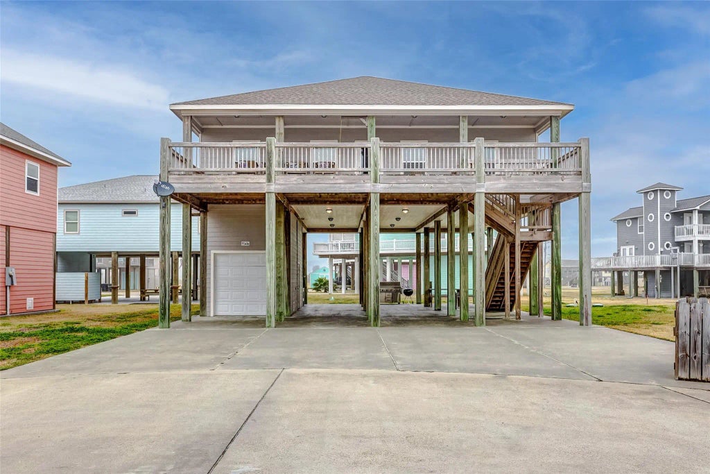 Escape to your perfect beachside retreat in the heart of Crystal Beach! Located in the desirable AE flood zone for lower insurance costs, this charming 3-bedroom, 2.5-bath home sits on a quiet cul-de-sac with convenient drive-on beach access right in the neighborhood. The spacious, open-concept living, kitchen, and dining areas seamlessly flow onto an oversized, partially shaded deck—perfect for soaking in the coastal breeze. Designed for relaxation and entertainment, this home features granite countertops throughout, built-in bunk beds, stainless steel appliances, and an outdoor sink and shower. Host unforgettable gatherings with a built-in picnic table and large grill, or unwind in the expansive shaded hangout space below. With plenty of room to accommodate two families, this Crystal Beach gem is your ideal getaway for sun, sand, and serenity. Don't miss out on this fantastic beachside escape!