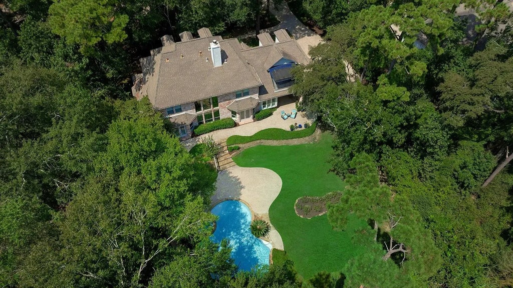 This custom home is perfectly placed on a 1.72 wooded acre lot w/ forest reserve behind. Across the street behind the trees is Grogans Pt. Park w/tennis, pickle ball, soccer field, basketball, covered pavilion and playground. The golf course is one block away and Pastoral Pond is just down the street. Shaded by old growth trees, the setting is so inviting! Both formals, family room, formal dining perfect for entertaining friends and family! Kitchen opens to breakfast & family room! Lots of soaring windows across back of house. Spacious primary w/ 2 closets, separate vanities, jacuzzi tub! Up you will find 2 bedrooms w/ shared bath, 1 ensuite and a 5th bedroom or extra room to use as you like, and the owners art studio/game room!Balcony! Sparkling pool/spa was re-plastered in 2024 and has new equipment! 3-car oversized attached garage w/ workshop. Quick access to I-45, Hwy 99, Exxon, Bush Airport, shopping & dining! Everything needed for a fabulous lifestyle!