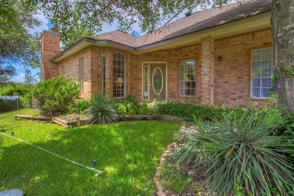 Welcome to this waterfront, custom-built, meticulously maintained 3/2 home, situated on a double lot in the heart of Hilltop Lakes. Constructed in 1998, this 2,264 sq ft home offers a blend of comfort, functionality, and timeless design, featuring a home office conveniently located off the primary bedroom. Enjoy the open layout with views of the water throughout for everyday living and entertaining. Designed to be wheelchair accessible, with wide doorways, accessible bathrooms, and step-free entry. Unwind by strolling among nature on the walking paths down to the water. Bring a chair and your favorite drink and enjoy your own private retreat. Extra parking—including RV parking with sewer, water, and 50A electric hookups. Storage shed for tools, lawn equipment, or seasonal items. Located in the highly desirable Hilltop Lakes community, which features a private airport, golf, fishing, tennis courts, horse stables, and more—this is lakeside living at its best!
