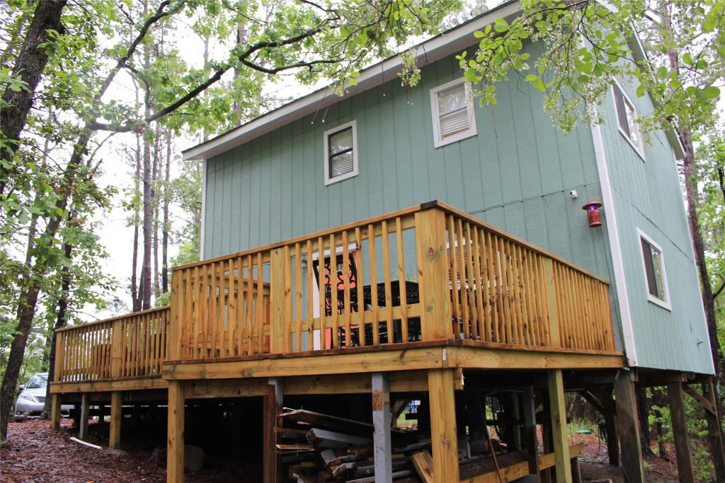 Tucked away in the serene woods of Onalaska, just steps away from Lake Livingston, and 1.5 hours from Houston, this charming 3 bedroom, 2-bathroom home offers the perfect blend of privacy, comfort, and natural beauty. Set on a spacious, tree-filled lot, this property is a true retreat for nature lovers, weekend adventurers, or anyone seeking a quiet escape from the hustle and bustle. Step inside to a warm and inviting living space featuring an open floor plan, a cozy living room flowing into a well-equipped and updated kitchen with ample cabinet space. Upstairs find three bedrooms and full bath to accommodate your family or friends. Enjoy your morning coffee on the elevated porch, kayaking on the lake or spending the afternoon exploring your own wooded backyard.Located just minutes from local shops and restaurants, this woodland hideaway combines rustic charm with convenient access to town and outdoor recreation. The 0.36 acre lot next door is available to purchase only with the home.