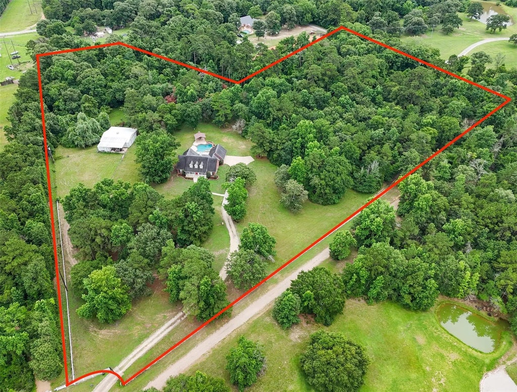 Stately family home on 10+ acres with pool/spa/pavilion, new roof and huge barn has 1-horse stall, storage room, plus vehicle storage & covered RV parking. Primely located in The Hills of Montgomery neighborhood with towering pines & rolling hills plus zoned to Montgomery exemplary schools. Welcoming front facade is adorned by shutters, dormers & front porch w/hanging lanterns. Formal dining plus study w/ french doors/built-ins. Spacious family room has gorgeous wood floors, fireplace, & dual french doors on either side to backyard/pool. Island kitchen with ample cabinets & counter space. Laundry room has storage/folding board. Primary ensuite w/ 2 vanities, soaking tub, glass shower. Upstairs is an enormous game room w/ pool table and space for furniture & gaming/tv area. Inviting setting to relax at the pool & spa surrounded by trees. Outdoor pavilion has room for outdoor living - lounging, cooking, watching the game. All this plus a driveway gate & a generator. Ready for move in.
