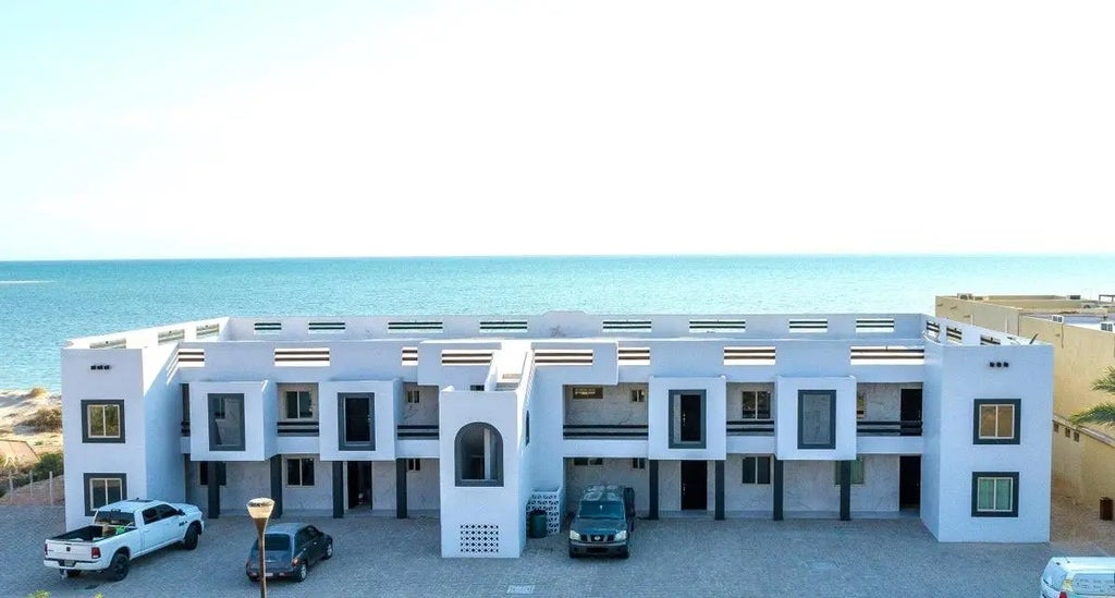 BEACH FRONT CONDO in Laguna Shores, one of the best areas in Rocky Point (Puerto Penasco). This 2 bedroom / 2 bath condo offers wonderful views. Open and bright with a very modern feel. Primary bedroom has a balcony facing the ocean. Community amenities include: large pool area facing the Mar de Cortez beach, palapas, jacuzzi, spa, an amazing restaurant, wine cellar, gym, game room, and water activities. Easy owner terms. Price is in USD
