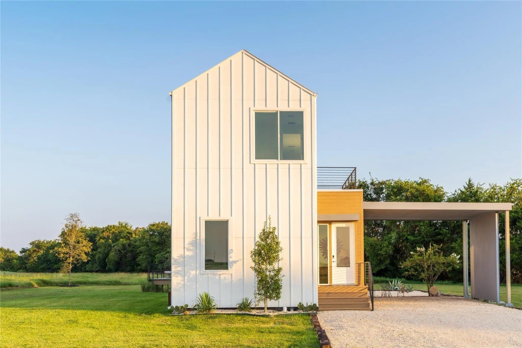 Discover elevated country living in this stunning hilltop modern home in the Tree Tops development, just minutes from the charm and culture of Round Top. This home features expansive windows that flood the interior with natural light and framed sweeping views of the countryside. Open-concept floor plan is ideal for entertaining, with sliding glass doors leading to a spacious Timber Tech deck and steps down to a serene outdoor area. Sleek, modern kitchen, Bertazzoni range with induction cooktop, large island, ample counter space, and a walk-in pantry. 4 spacious bedrooms, each with its own en-suite bathroom, and half bath downstairs. Private balcony upstairs offering panoramic views of rolling hills and treetops. 2-car carport. Whether you're seeking a stylish second home, a weekend escape, or a high-demand rental, this property is perfectly positioned near the Round Top Antique & Design Show, making it a smart investment and a peaceful retreat.