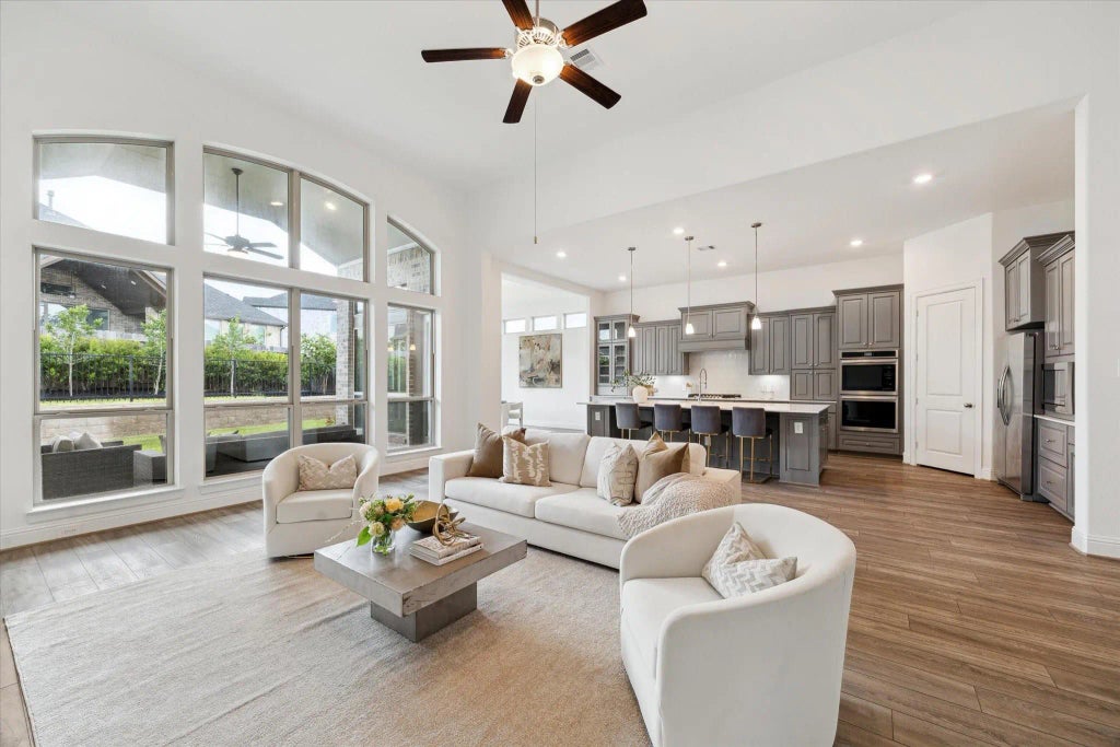 Welcome to your dream home in the beautiful, gated Woodtrace community! This Village Builders Classic Collection Victoria "C" one-story home blends elegance and comfort. Step into a grand foyer that leads to a spacious open-concept layout featuring a gourmet kitchen, a large family room with fireplace, and a covered back patio—perfect for entertaining or relaxing. Abundant natural light throughout. The private primary suite offers a luxurious retreat with a spa-like en-suite bath, including dual sinks, soaking tub, separate shower, and a generous walk-in closet that conveniently connects to the utility room. A stylish study sits just off the primary suite, ideal for work or reading. Additional highlights include an 8' front door, four-car tandem garage with windows, and premium finishes throughout. Enjoy the amazing amenities of the Woodtrace community - walking trails, ponds, playground, clubhouse, pool, tennis court, and more! Schedule your private tour today!