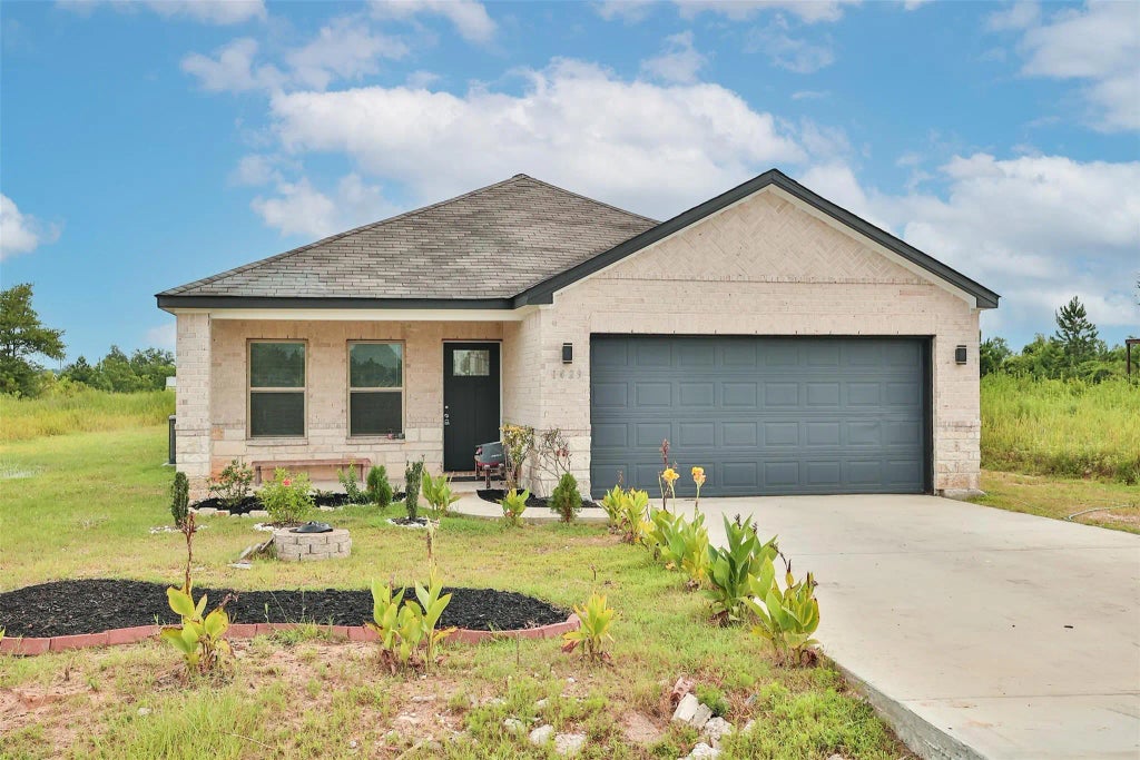 This beautifully upgraded 4-bedroom, 2.5-bathroom home was built in 2022 and is freshly painted inside and out. It features an open-concept layout connecting the kitchen, dining, and living areas—ideal for entertaining or daily living. The kitchen includes quartz countertops, upgraded cabinets, a center island, modern backsplash, space for a dishwasher or wine fridge, and a refrigerator. Marble floors in wet areas, wood-look laminate in living spaces, and designer finishes add style throughout. The primary suite offers a large walk-in shower, dual vanities, and upgraded cabinetry. Oversized ceiling fans are in all bedrooms and the living room. Exterior highlights include a brick and stone front with Hardie siding on the sides and back, plus a backyard animal shelter ready for goats or chickens. Just minutes or walking distance from Champions at International Leadership K-8, this home blends comfort, upgrades, and convenience.