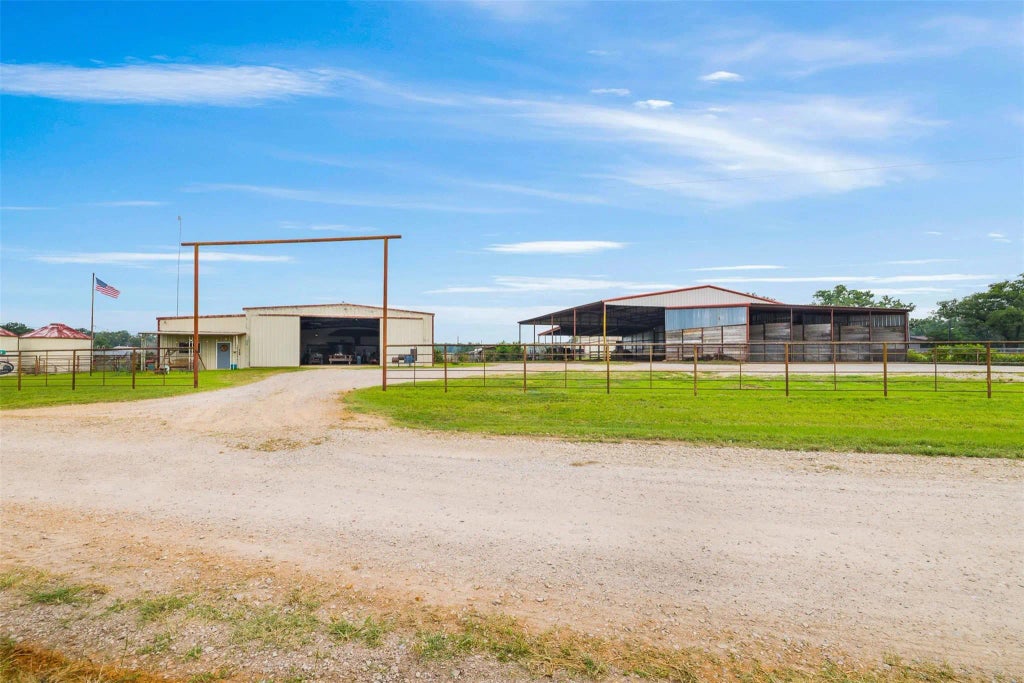 Exceptional 24-acre property perfectly equipped for equestrian enthusiasts, cattle operations, and those seeking a country lifestyle with all the modern conveniences. Step into a spacious 1,734 sq ft (per owner) barndominium featuring 3 bedrooms, 2 bathrooms, and a versatile bonus room that could be used as a playroom, office, or additional living space. Barns & Storage: Enjoy a hay/horse barn featuring a small, covered riding arena, plus a robust concrete-floored commodity/hay barn. Shop & Office: Shop with a roll-up door and a climate-controlled office. Processing & Handling: The property boasts an enclosed cattle processing building with a climate-controlled medicine/storage room for livestock management. Fencing: Pipe fences run throughout the property. Pens & Traps: Five large pipe traps/pens, each with water troughs, for out horses or stocker/feeder cattle. Ten pipe pens in the cattle working area, all with water troughs, plus pipe alleys for efficient livestock handling.